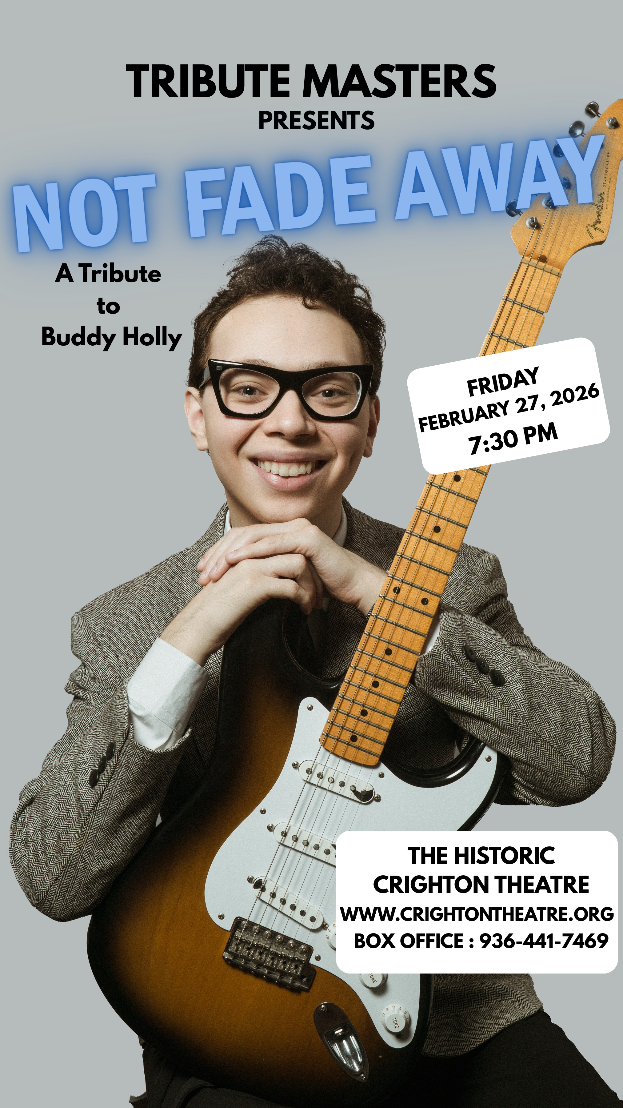 The Crighton Theatre is a truly historic theatre built in 1934, and is the home base for performances offered by Stage-Right Productions, and Christian Youth Theatre and holds various music concerts and shows. In addition, the theatre is offered for rent for other events. This web site provides information regarding Crighton Theatre Foundation support and coming events. Productions at the Crighton are funded in part by a grant from the City of Conroe.